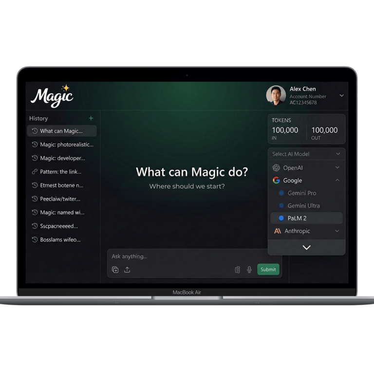 AI as a Service: The Magic platform brings all the leading AI models together into one easy to use, intuitive interface.